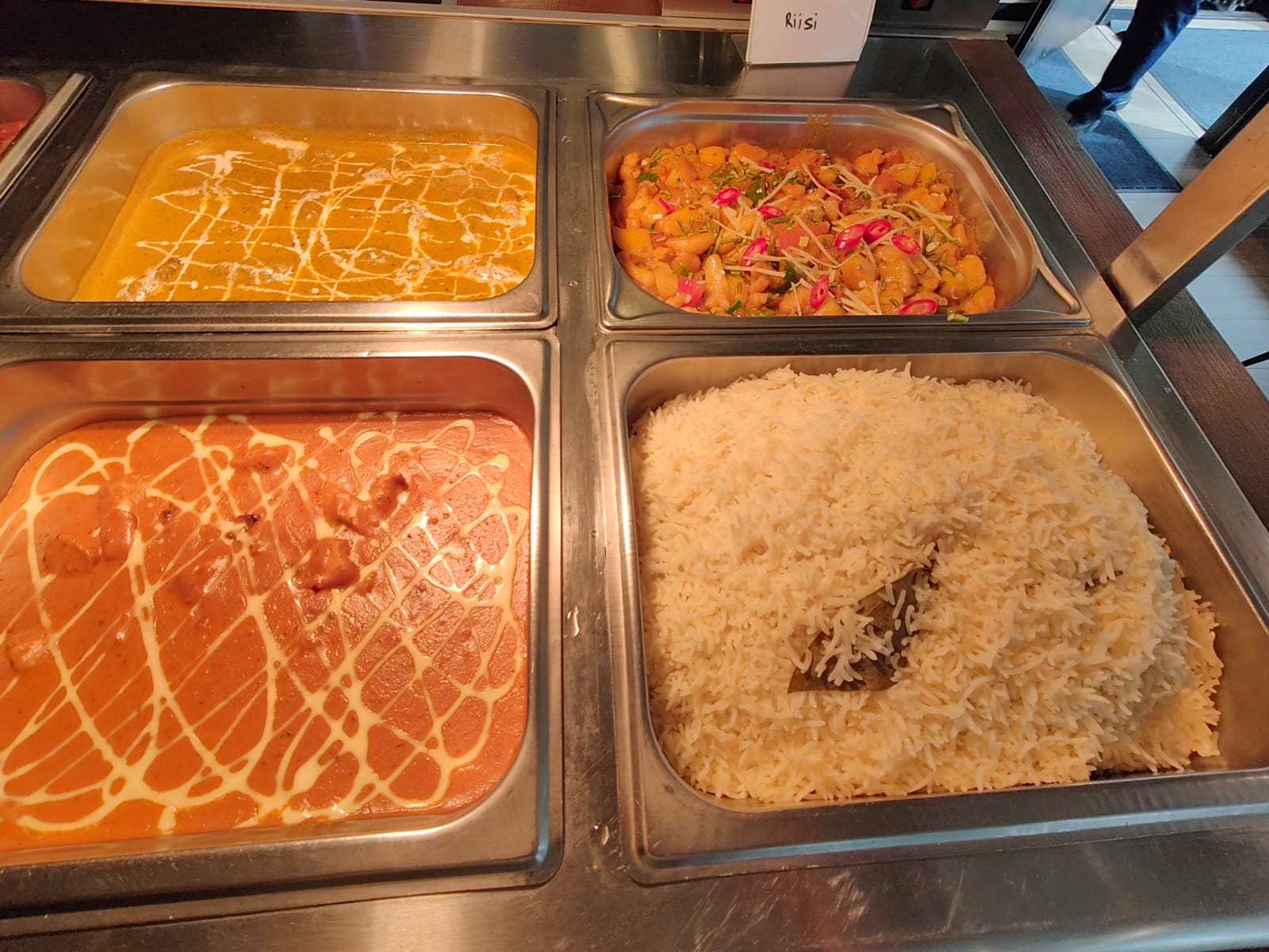 (Lounaaseen sisältyy päivän salaatti, basmati riisi, naan leipä, mango lassi, sekä kahvi tai nepalilainen tee. Basmati rice, naan bread, mango lassi, salad, nepalese tea and coffee are included.)